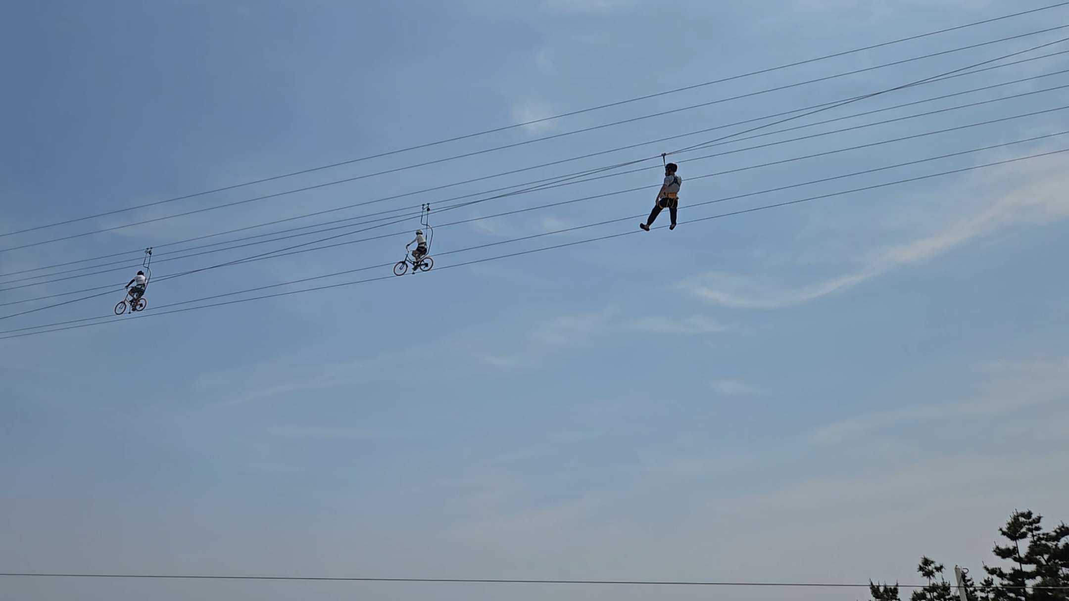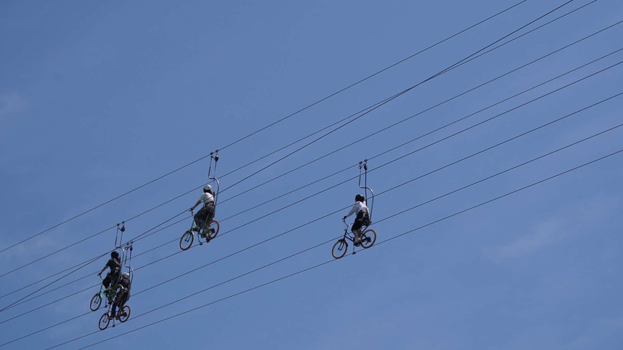 상당히 높은 위치에서 체험하기 때문에 다소 무서울 수 있지만 와이어로프가 자전거를 위아래로 고정하고 있어 절대로 뒤집히거나 추락할 위험이 없다고 합니다.