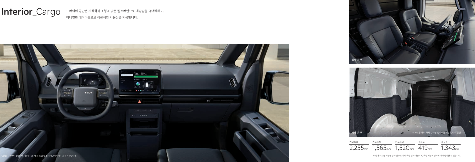 📦 카고 모델 – 화물 적재에 최적화된 전기 밴