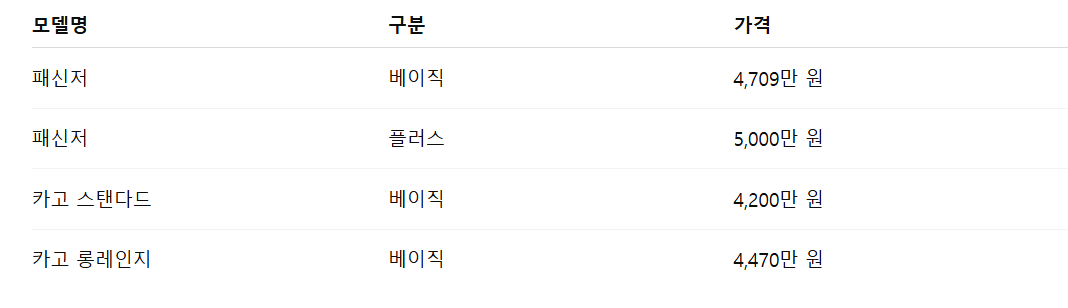 ▶패신저 모델: 약 3천만 원 중반대