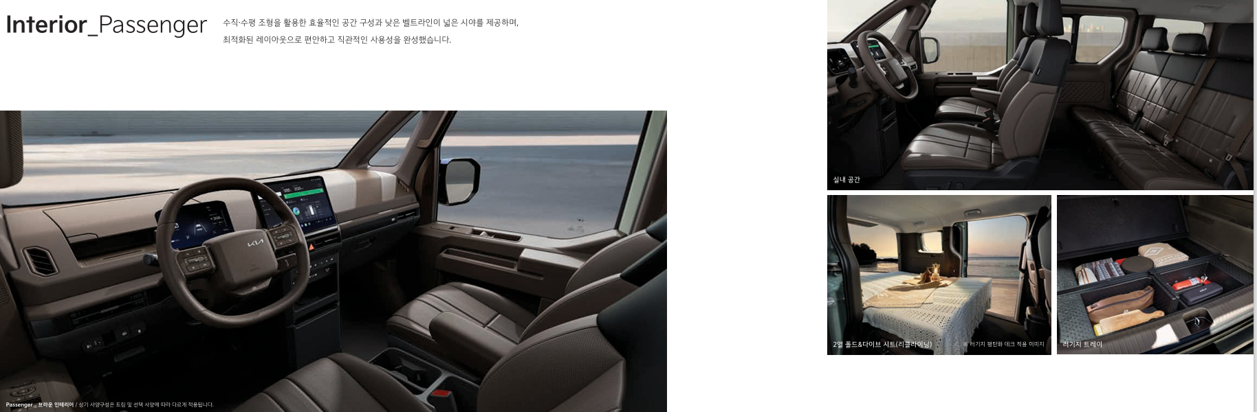 패신저 모델은 탑승과 적재공간의 적절한 믹스로 다양한 용도로 사용이 가능하다는 장점이 있습니다.